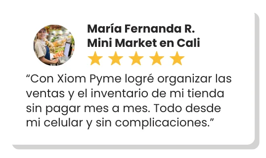 Con Xiom Pyme obtienes el control total de tu negocio, gestionas tus ventas, inventario, proveedores y clientes desde $59.900 COP, Mensualidad con soporte incluido.